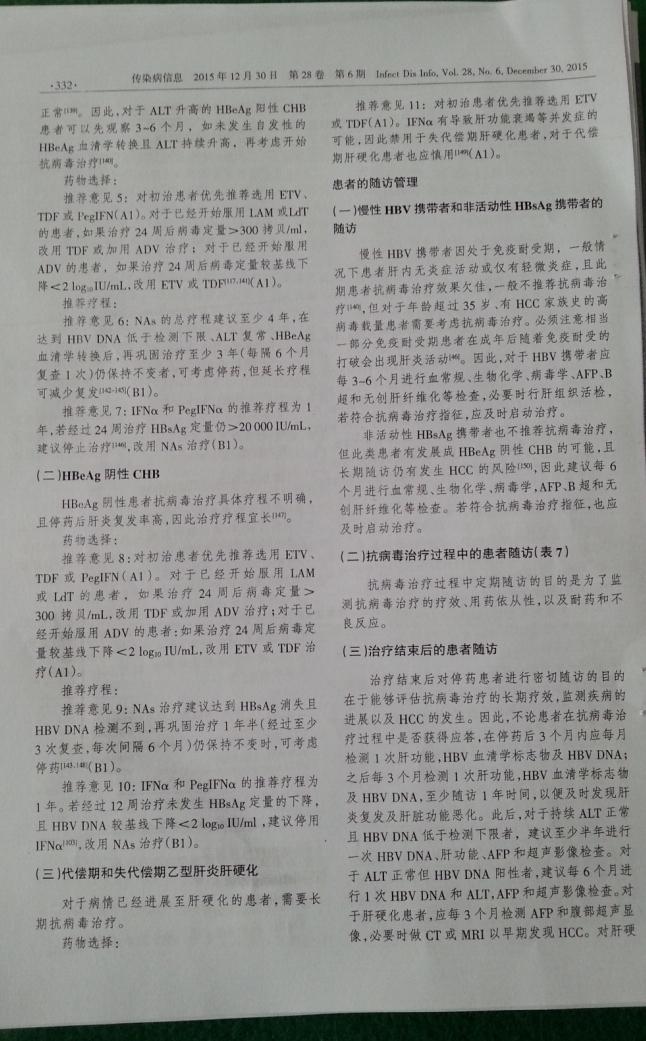 慢性乙型肝炎防治指南(2015更新版)