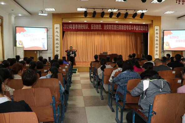 开展“春季消防知识、治安防范、扫黑除恶专项斗争宣传培训会”及消防疏散应急演练