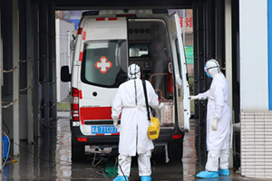 消毒员们在严密防护下,每天有条不紊地进行着消毒工作。他们每次都要背着装有20升消毒液的桶,来回穿梭于隔离区,虽然天气寒冷,但一个班次下来,他们的衣服全部湿透了,却从不叫苦叫累。夜晚,顶着刺骨的寒风,消毒员还要在室外,一遍又一遍的消毒每一辆驶入的120转运车,车厢内消毒、车外消毒、车身淋洗等程序一一按流程消毒下来,最快也得15分钟。而最多的时侯,一个人一晚上要完成对30余辆救护车的消毒工作。