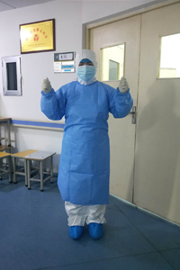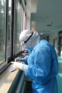 我在这次抗击疫情的战斗中,作为隔离四区的保洁员,近距离目睹了医护人员治疗病人的情景。隔离四区收治患者中有不少年老体弱者,这就更需要护士们的细心照顾。看到她们戴着两三层手套,汗水模糊了护目镜,还在为患者做雾化、输液,五六个小时不能喝水、上厕所,连歇一会儿的时间都没有,真有些心疼他们,也敬佩他们。