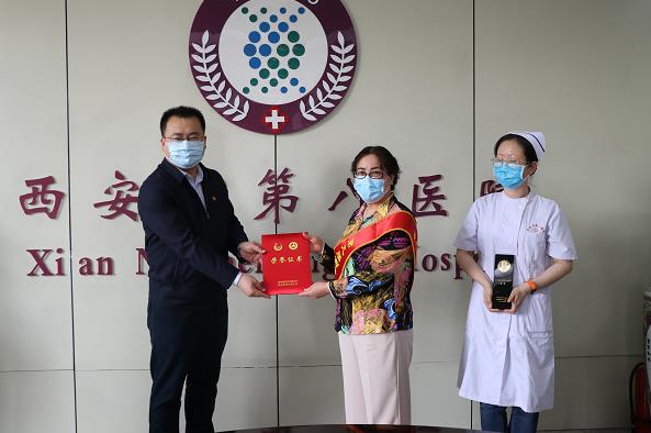 为纪念五四爱国运动101周年,传承五四精神担当时代责任,4月30日上午10:30,团市委副书记徐辉一行四人来到韩国三级 ,为韩国三级 隔离一区颁发西安青年五四奖章集体。院党委书记李学敏、党办主任宗红梅、团委书记王雯及隔离一区主任和护士长及护士代表共同参加。
