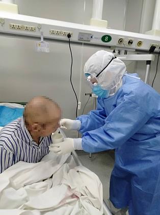 老人爱吃鸡蛋,爱喝酸奶,除了医院准备的外,护士们还把自己的酸奶和鸡蛋拿给老人,吃鸡蛋护士们一点一点的掰下来喂他,喝酸奶护士们就剪开盒子一勺一勺的喂,怕水果凉,老人牙口不好,护士们就用热水隔水一热,拿勺子一点一点刮下来喂给老人。除此以外,翻身拍背、清理大小便,为老人擦身,护士们穿着隔离衣,稍一动就浑身是汗,看似简单地操作,可仅为老人翻个身,护士们就能汗流浃背,连护目镜里都是汗水。