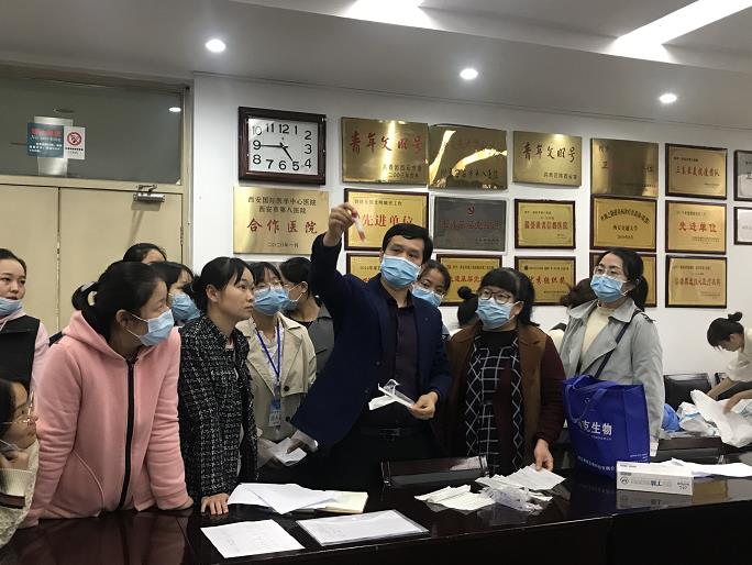 随后,医务科黄小正科长强调严格落实病区查房制度,要求对隔离病区患者成立一对一的新冠患者关爱群,保证患者在住院期间得到满意的治疗。护理部任艳叶主任强调了隔离病区各种安全制度的交接工作及隔离生活区的管理规定。控感科权晓娟主任对所有参加培训的人员进行了院感知识的培训,现场演示了防护服的穿脱,并组织考核。为提高新冠核酸采样标本的阳性率,由检验科钱宏波主任专门讲解了核酸采样的方法,现场进行了演示,并两两进行了互采,考核通过者方可进行核酸采样。