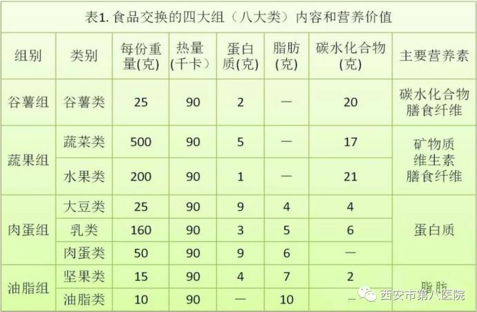 碳水化合物:为谷薯类,俗称主食,主要从淀粉类食物(如米面类,杂豆类、土豆等根茎类蔬菜)、双糖(如乳糖,蔗糖,麦芽糖)、单糖(葡萄糖、果糖)中获得。占每日能量的55%~65%,主要提供能量、蛋白质、膳食纤维和B族维生素,对健康的作用不容忽视。脂类:脂肪和类脂的总称,主要供能(每克碳水供能4千卡,每克蛋白质产能4千卡,每克脂肪产能9千卡),占每日能量的25%~30%,促进脂溶性维生素吸收,维持体温保护脏器、增加饱腹感,提高食物感官性状,主要来源动物性食物、植物油和坚果等。