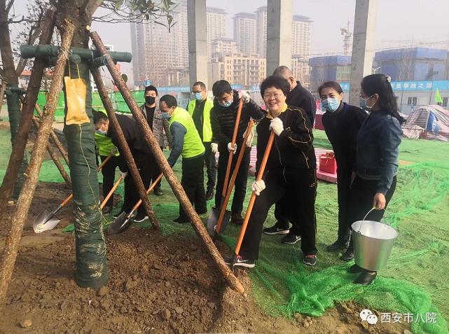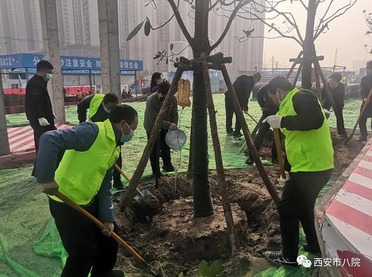 早春三月,鲜花吐蕊,春意盎然,一年一度的植树节之际,韩国三级 领导班子来到了红会医院高铁新城院区在建现场,同市卫健系统各单位共同参加了由西安市卫生健康委员会主办的西安市卫生健康系统2021年全民义务植树节活动。早上9时植树活动开始,院领导们为一株株玉兰树苗培土、浇水,并为它们挂上了写有书名、栽种日期的小名片。