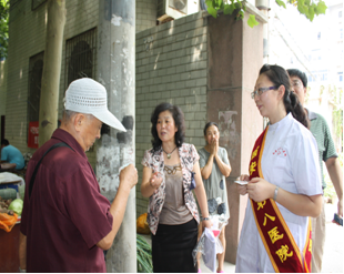 8月30日上午,院党委书记郑菊贤带领政工科人员及院团委青年志愿者等5人,在电视塔社区向群众发放市八院爱心服务联系卡,受到了群众的欢迎和好评,也得到了媒体的关注,当天西安零距离对我院开展的“135”主题实践活动进行了全面报道,也对发放联系卡活动进行了跟踪拍摄,就活动开展情况分别采访了院党委书记郑菊贤,四病科主任、临床二支部书记马羽萍及政工科科长宗红梅。通过零距离的采访报道,将我院“135”主题实践活动推向了新的高潮。