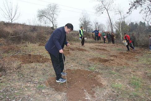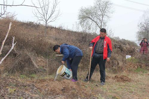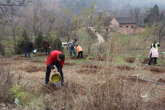 11月29日,市计生协秘书长涂洪柱带队一行7人,韩国三级 党委书记李学敏带队,医院全体支部书记及部分党员干部共19人前往临潼庄王村王悦明家,正式启动产业扶贫项目。到家后,涂秘书长和李书记再次和王悦明进行了详细沟通交流,确定方案后,组织大家分头开始干活,同志们分工协作,带上铁锹、镐头,不畏寒冷,不怕劳累,都热情高涨地为王悦明平整闲置的坡地,挖坑、种树、浇水。在大家的努力下,到下午16:30,近80棵花椒树全部栽种到位,老人看着半坡的花椒树,高兴的合不拢嘴,脸上一直洋溢着幸福的笑容。