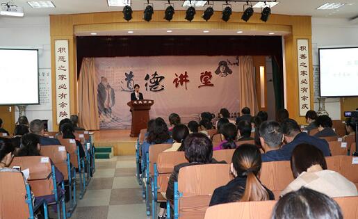 活动以宣扬社会公德、职业道德、家庭美德和个人品德为核心,通过学习模范事迹,用身边人讲身边事,身边人说自己事,身边事教身边人的方式,宣扬社会公德、职业道德、家庭美德和个人品德,通过观看、了解凡人善举,以提高医院党员干部职工的道德素养,进一步弘扬中华文明,营造崇德向善的道德氛围。本次道德讲堂有省心、行崇德礼、唱道德歌曲、讲道德故事、诵道德经典、念劝善词、作道德承诺等环节。