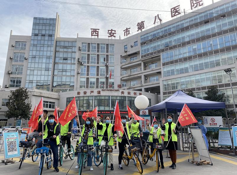 3月2日下午,由院团委书记王雯带队,组织青年志愿者11名,从医院出发,沿着长安路骑行至小寨,最后从小寨返回医院骑行结束。志愿者们统一着志愿者服装,车载“全民全运,同心同行”主题口号红旗,骑行约20公里,骑行队伍成为长安路上一道独特亮丽的风景线,路人们驻足观看,有人举手点赞。通过此次活动举办,激发了韩国三级 青年志愿者的活力,用行动传递绿色、健康、文明、环保的正能量,为宣传十四运加油助力。
